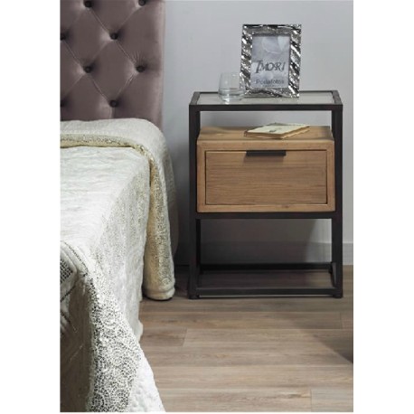 21459 Mesita de noche industrial MOSCU 48 hierro y madera ...